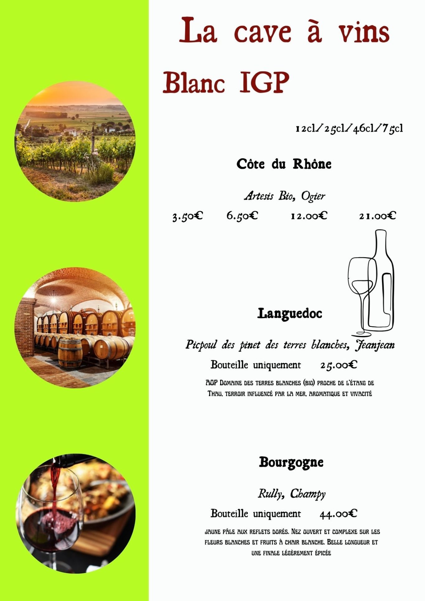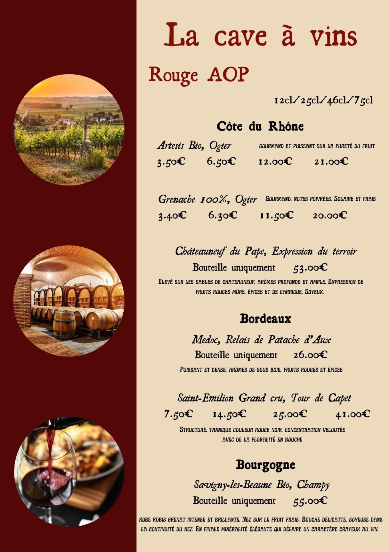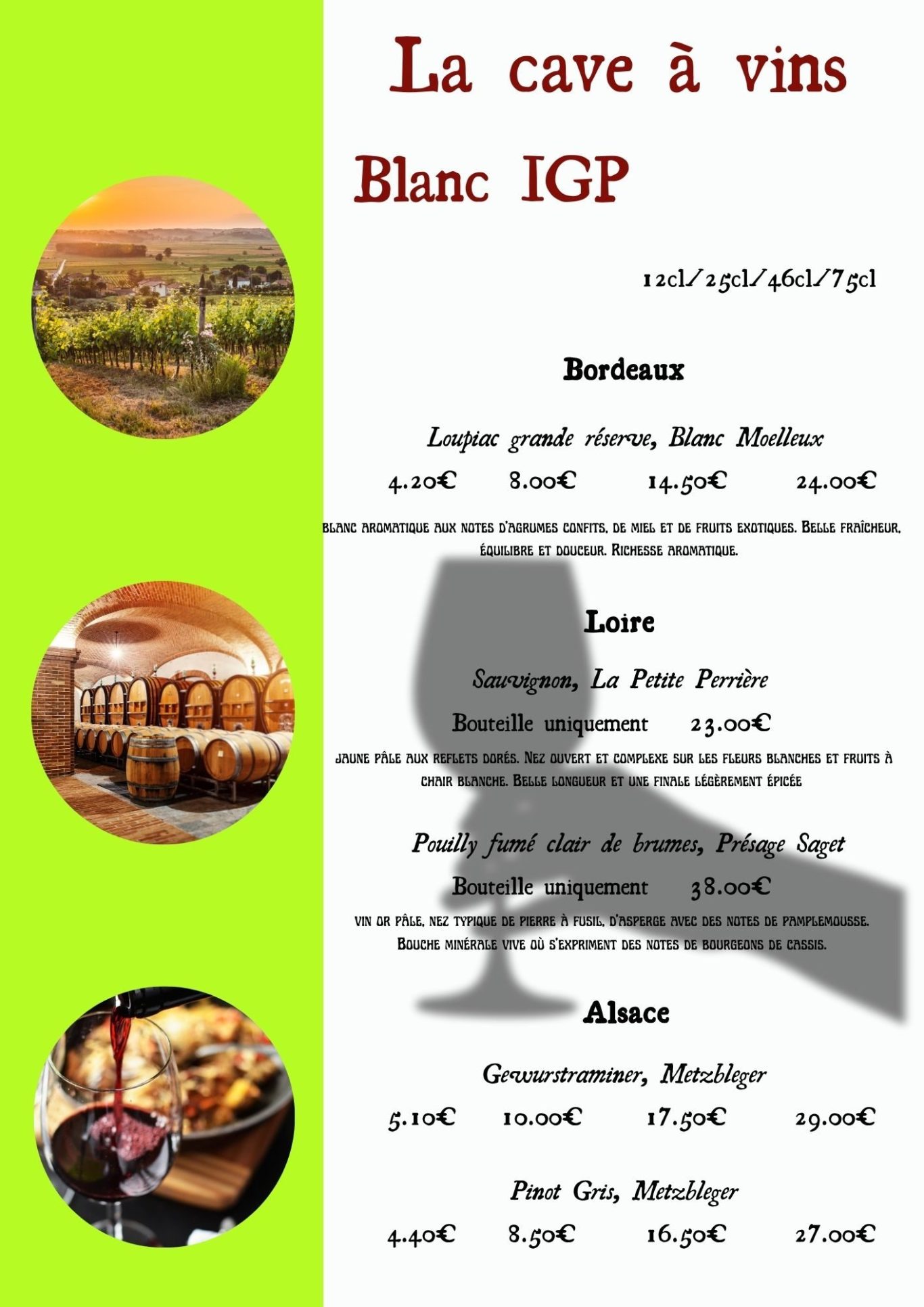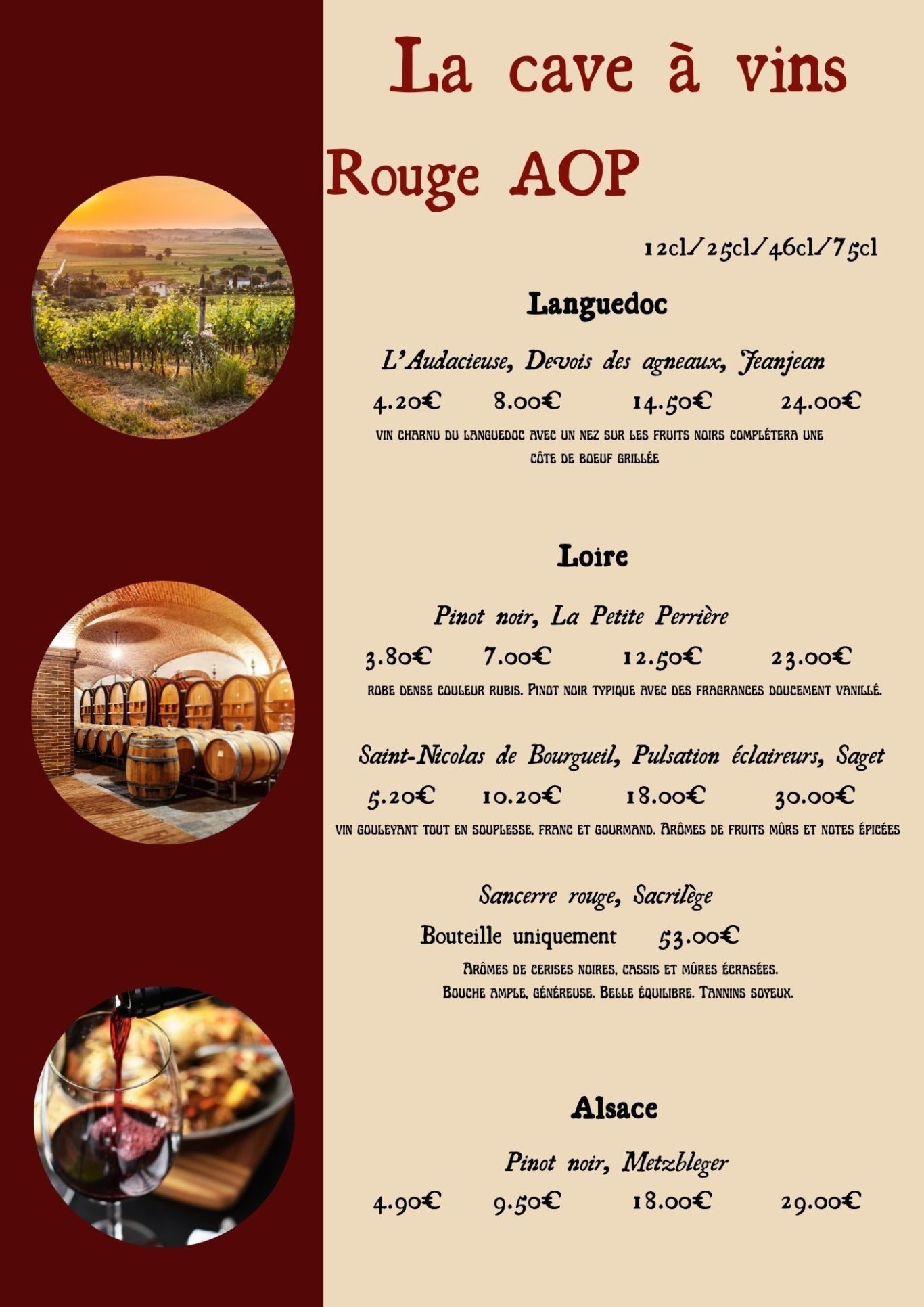 Sélectionné par nos spécialistes Fabrice et Loïc, nous vous proposons un choix de vins au verre en pichet ou en bouteille pour accorder vos plats